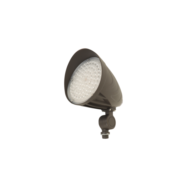 The Dimmable LED Bullet Flood Light offers three levels of light output as well as three color temperatures. Its focused beam angle and built-in photocell make this luminaire perfect for illuminating residential and commercial outdoor areas. It’s great for flag poles and accent lighting. Easily mount this light with the Round Canopy Mounting Plate or the Line Voltage Ground Stake (sold separately).