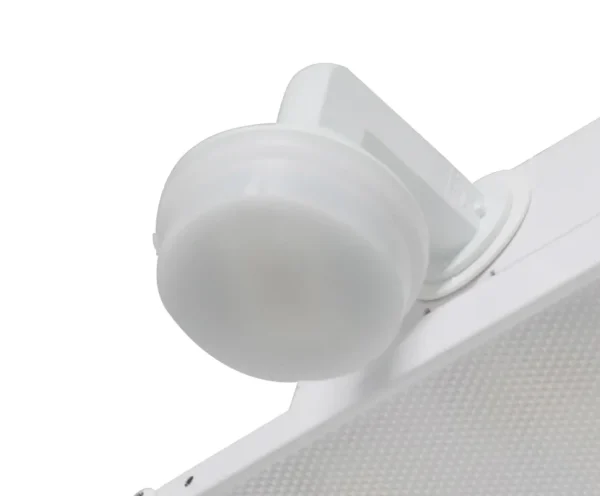External Screw-in microwave sensor with RCA jack for use with screw-in receptacle. Specifically design with 90 degree elbow for use with full body lensed High Bay lighting fixtures. Can be mounted up to 49-ft